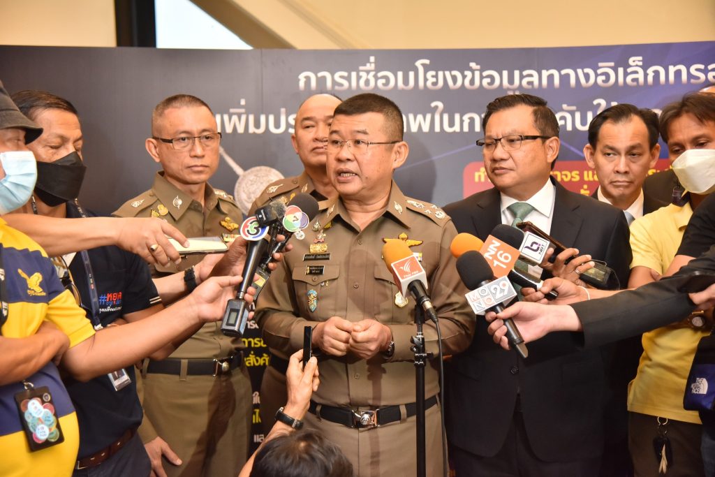 วันที่ 8 กุมภาพันธ์ 2566 เวลา 10.30 น. ณ ห้องสารสิน สำนักงานตำรวจแห่งชาติ พล.ต.อ.ดำรงศักดิ์ กิตติประภัสร์ ผบ.ตร., นายจิรุตม์ วิศาลจิตร อธิบดีกรมการขนส่งทางบก, นายเสกสม อัครพันธ์ุ รองอธิบดีกรมการขนส่งทางบก และผู้บริหารของกรมการขนส่งทางบก พร้อมด้วย พล.ต.อ.รอย อิงคไพโรจน์ รอง ผบ.ตร., พล.ต.ท.ประจวบ วงศ์สุข ผู้ช่วย ผบ.ตร., พล.ต.ท.ไตรรงค์ ผิวพรรณ ผบช.กมค., พล.ต.ท.นัยวัฒน์ ผะเดิมชิต ผบช.สยศ.ตร. และ พล.ต.ท.นิธิธร จินตกานนท์ ผบช.ประจำ สง.ผบ.ตร., พล.ต.ต.เอกราช ลิ้มสังกาศ ผบก.ทล. ได้ร่วมกันแถลงข่าวประชาสัมพันธ์การเชื่อมโยงข้อมูลทางอิเล็กทรอนิกส์เพื่อเพิ่มประสิทธิภาพในการบังคับใช้กฎหมายว่าด้วยการจราจรทางบก เพื่อลดการกระทำผิดกฎหมาย ป้องกันและลดอุบัติเหตุทางถนน ผบ.ตร. กล่าวว่า พล.อ.ประยุทธ์ จันทร์โอชา นายกรัฐมนตรี มีความห่วงใยต่อพี่น้องประชาชนผู้ใช้รถใช้ถนน ให้เกิดความปลอดภัยในการขับขี่ ลดจำนวนผู้เสียชีวิตและผู้บาดเจ็บจากอุบัติเหตุ จึงได้สั่งการให้สำนักงานตำรวจแห่งชาติ และกรมการขนส่งทางบก ร่วมกันดำเนินการกวดขันวินัยการขับขี่ โดยบังคับใช้มาตรการตามที่กำหนดในกฎหมายให้เกิดประสิทธิภาพสูงสุดทั้ง 2 หน่วยงาน จึงได้ร่วมกันกำหนดมาตรการ เพื่อเพิ่มประสิทธิภาพการบังคับใช้กฎหมายว่าด้วยจราจรทางบก จำนวน 2 มาตรการ ได้แก่