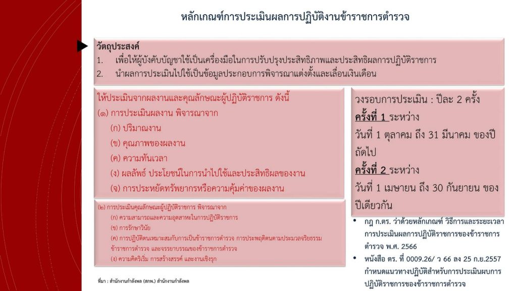 1.กฎ ก.ตร. ว่าด้วยหลักเกณฑ์ วิธีการและระยะเวลาการประเมินผลการปฏิบัติราชการของข้าราชการตำรวจ พ.ศ.2566 คลิกอ่าน