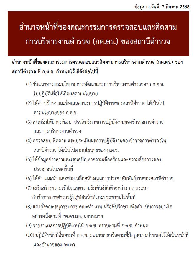 Home » O4 ข้อมูลคณะกรรมการตรวจและติดตามการบริหารงานตำรวจ(กต.ตร.)ของสถานีตำรวจ(2568)